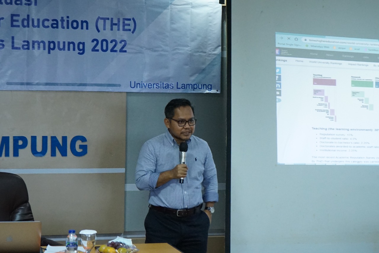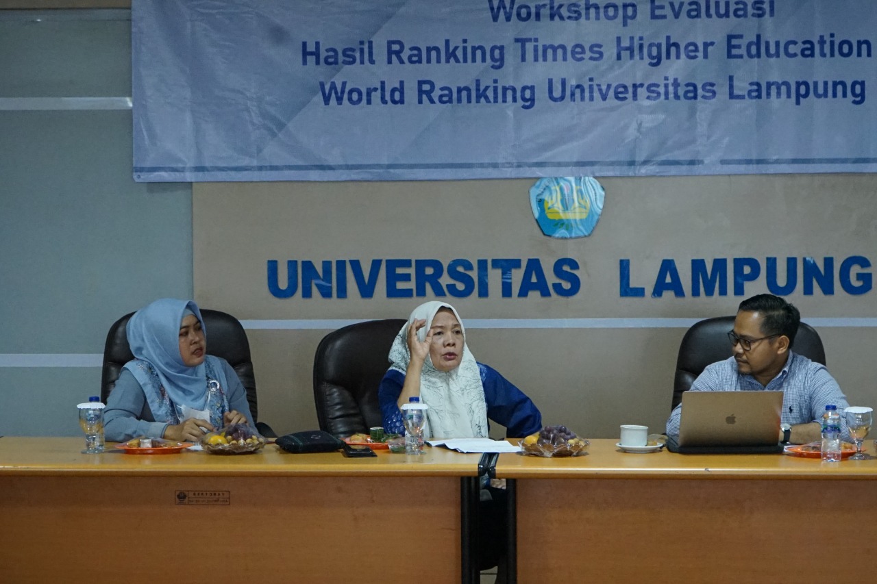(Unila): Dalam rangka meningkatkan performa dan peringkat di level global, tim Times Higher Education (THE) Universitas Lampung (Unila) mengadakan Workshop Strategi Peningkatan Ranking Times Higher Education World Ranking Universitas Lampung.