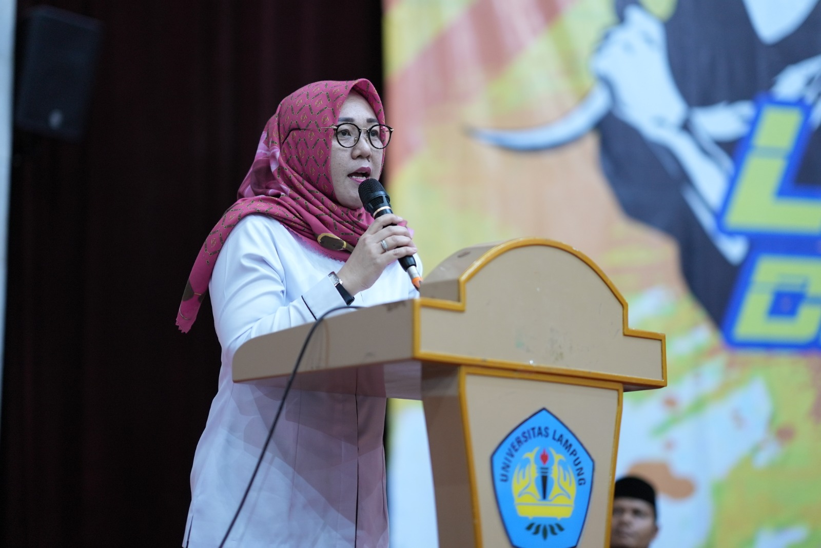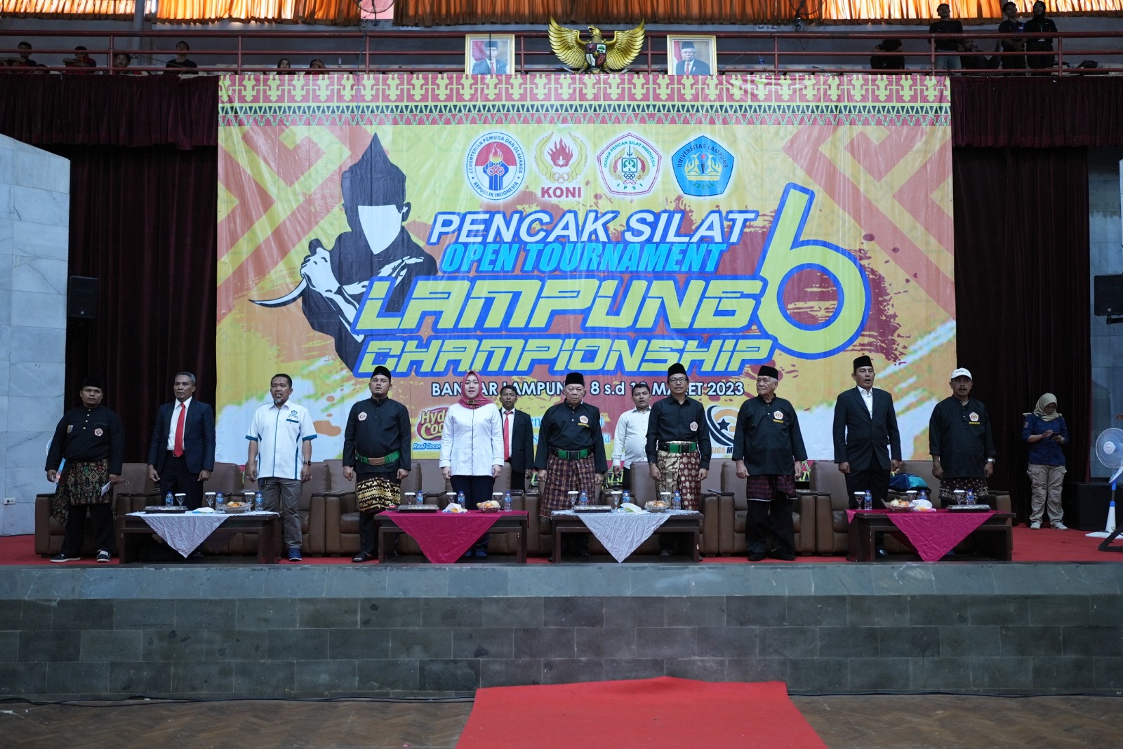 (Unila): Wakil Rektor Bidang Kemahasiswaan dan Alumni Dr. Anna Gustina Zainal, S.Sos., M.Si. menghadiri pembukaan Pencak Silat Nasional Open Tournament Lampung Championship VI Tahun 2023, Rabu 8 Maret 2023 di GSG Unila.