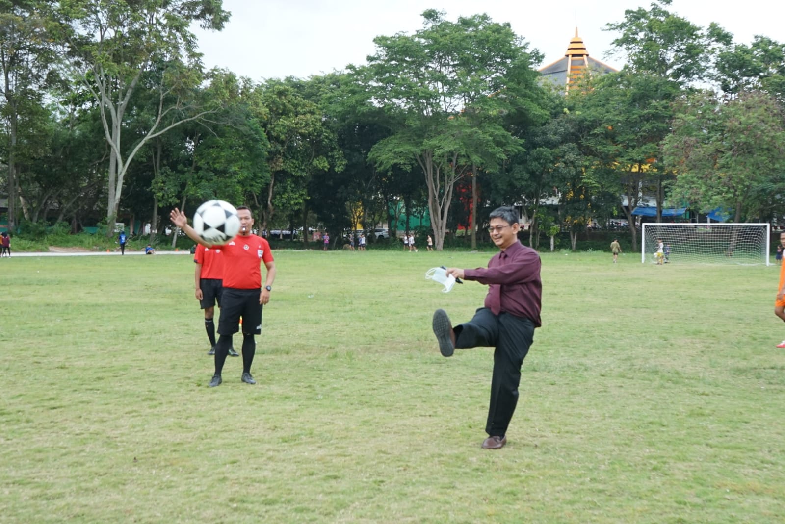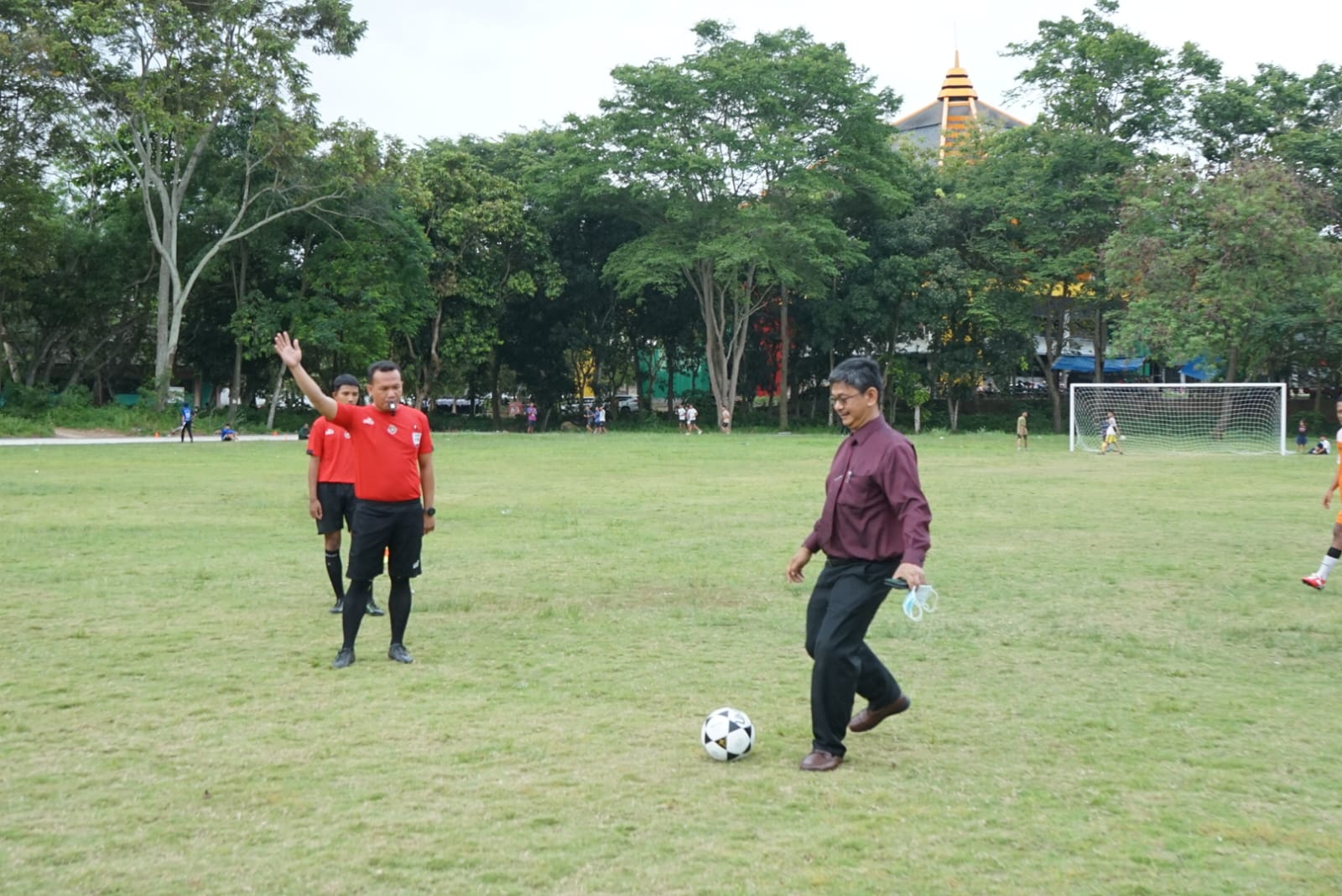 (Unila): Wakil Rektor Bidang Umum dan Keuangan Universitas Lampung (Unila) Prof. Dr. dr. Asep Sukohar, S.Ked., M.Kes., membuka pertandingan sepak bola di lapangan sepak bola kampus setempat, Senin, 5 Desember 2022.